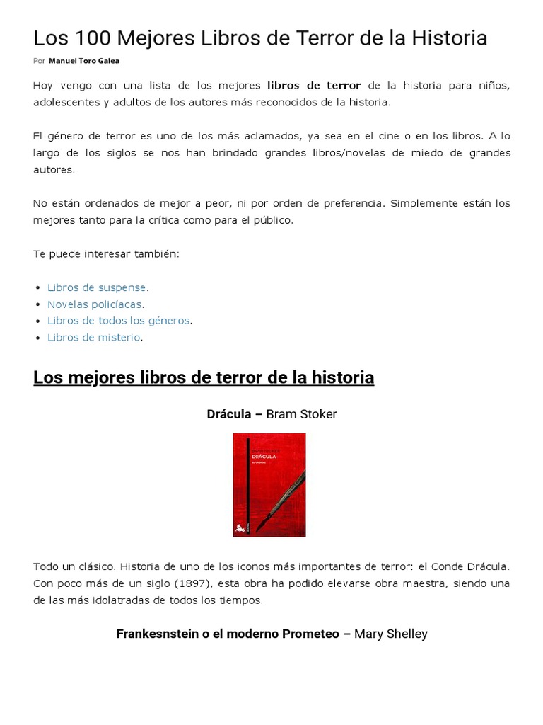 Aquí información sobre el los mejores libros de miedo y terror podemos compartir. Administrador blog Leer un Libro 2019 también recopila imágenes relacionadas con los mejores libros de miedo y terror se detalla a continuación. Visite la fuente del sitio web para obtener más detalles.