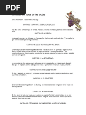 Resumen hace unos minutos terminé de leer las brujas un cuento maravilloso de roald dahl y debo confesar que durante la lectura me convertí en un niño de diez años atrapado totalmente en la trama de la historia. Lo más importante de aprender sobre las brujas visten y tienen un aspecto normal muy parecido a las mujeres de normales por eso son tan difíciles de atrapar. Nota media 802 muy bueno. Las brujas para portada primer capitulo. Las brujas roald dahl resumen por capítulos. En una de las vacaciones sus padres mueren en un accidente de tráfico y él se queda a vivir en noruega con su abuela. Una bruja de verdad odia a los niños elimina un niño por semana 52 por año. Las brujas roald dahl. Un libro buenísimo para niños jóvenes y adultos hola a todos gracias por ver el video aquí les dejo un poco más de información de esta obra. Definición del problema en la investigación de mercado y desarrollo del enfoque definicion del problema. Hace falta un muchacho sugiere el autor para convertirlo en un hombre de bien en un adulto con proncipios e ideas. Resumen del libro las brujas de roald dahl resumen el cuento trata de un niño de padres noruegos de siete años que pasa sus vacaciones de verano y de navidad en casa de su abuela materna en noruega.